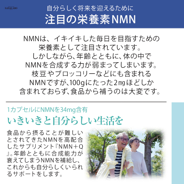 人生100年時代を自分らしく彩るサプリメントNMN+Qです。