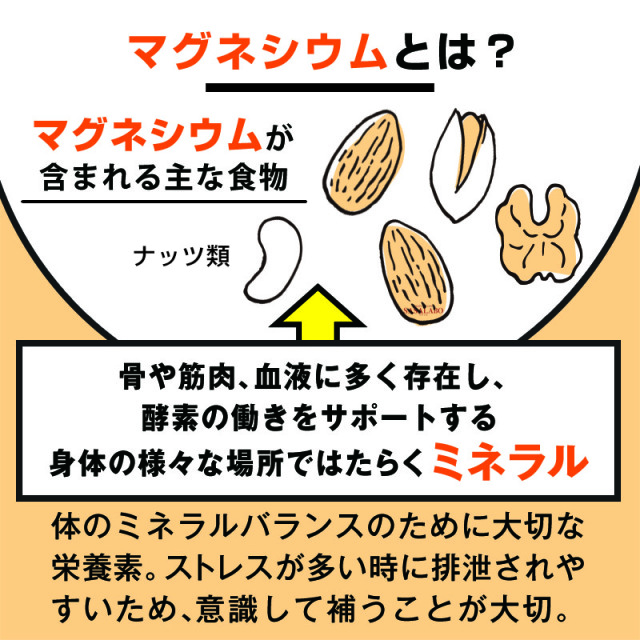 ミネラルバランスに関わるマグネシウムの摂取で、毎日健康に。
