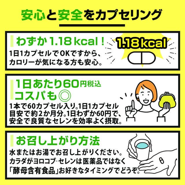 | 原材料 | ビール酵母、セレン含有食用酵母、プルラン(カプセル) |